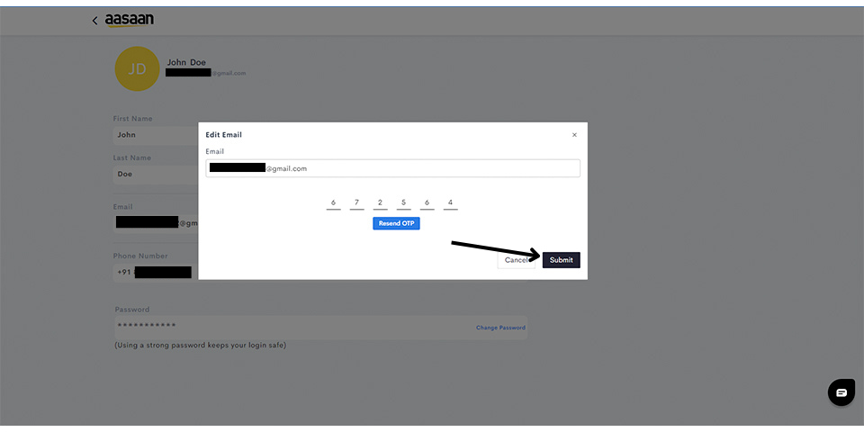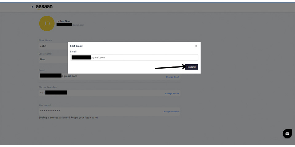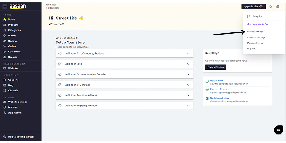 Login to your aasaan admin panel, click on the settings icon in the top right corner and then click on Profile Settings.