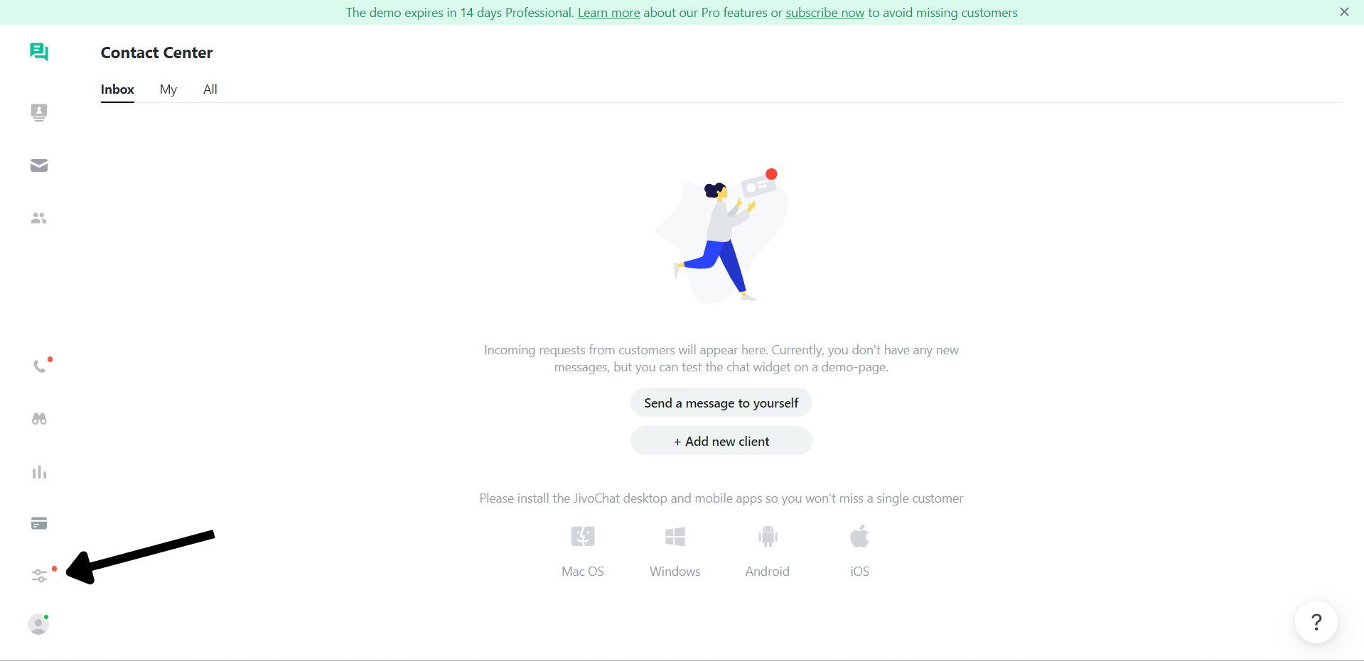 Note: Make sure to install JivoChat from the app market. Click here to learn how to install apps from your app market.